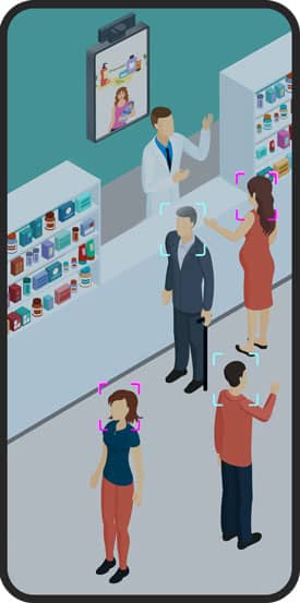 L'innovativa capacitá di rilevare gruppi di persone nell'ambiente permette di offrire le migliori soluzioni in pubblicità.